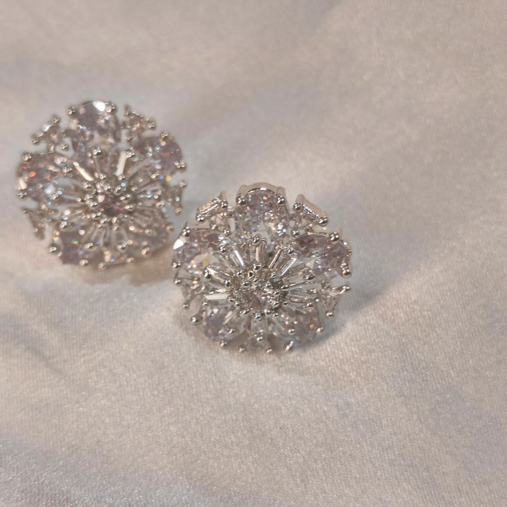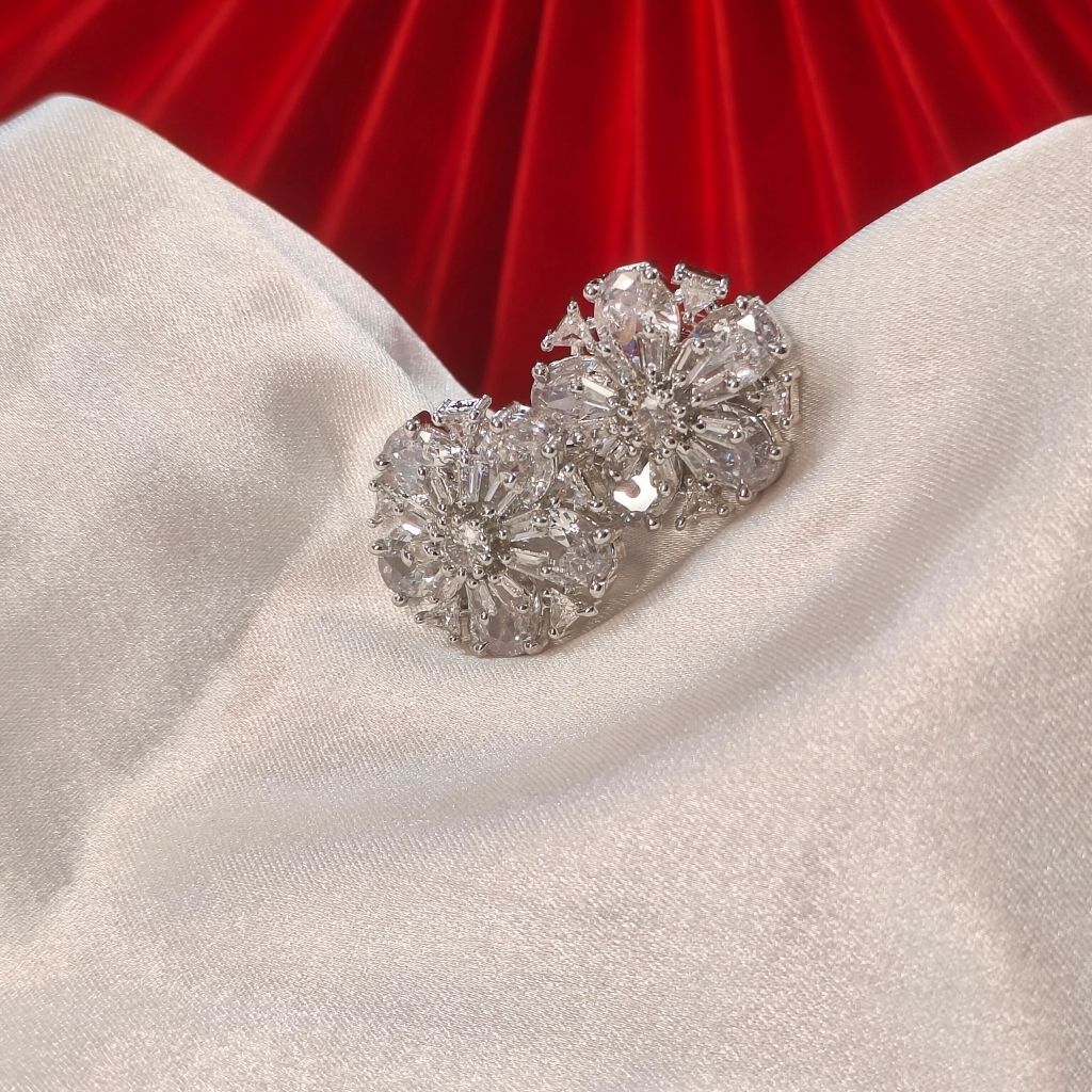These CHANGLABLE AD EARRINGS in white are a special pair. You can change the center stone to match your outfit. They are a great way to have fun with your style and are perfect for any occasion.