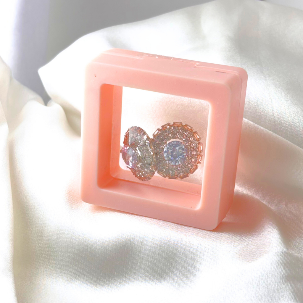 These CUBIC ZIRCONIA EARRINGS in a soft pink color are a fun and pretty pair. The round shape is simple, and the sparkly stones make them stand out. They are a lovely choice for a sweet and girly look.