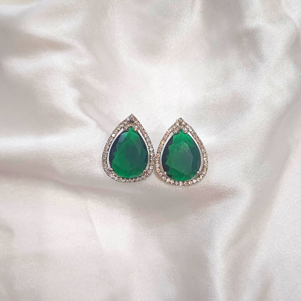 You're viewing: CUBIC ZIRCONIA EARRING -OVAL DARK GREEN Original price was: ₹ 520.00.Current price is: ₹ 400.00.