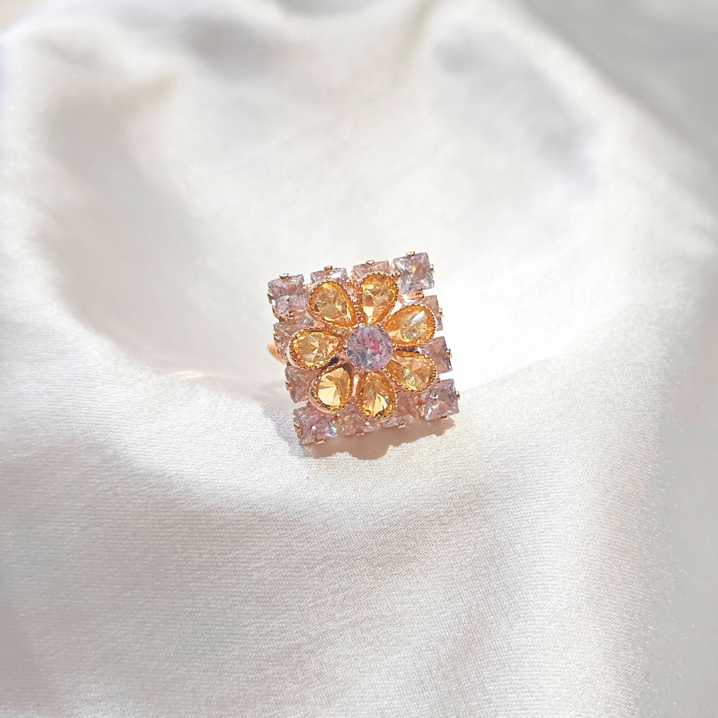 CUBIC ZIRCONIA RING- SQUARE YELLOW