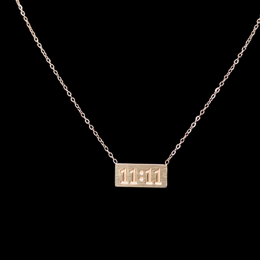 A cool necklace with the numbers 11 and 11. It’s a simple and stylish piece.