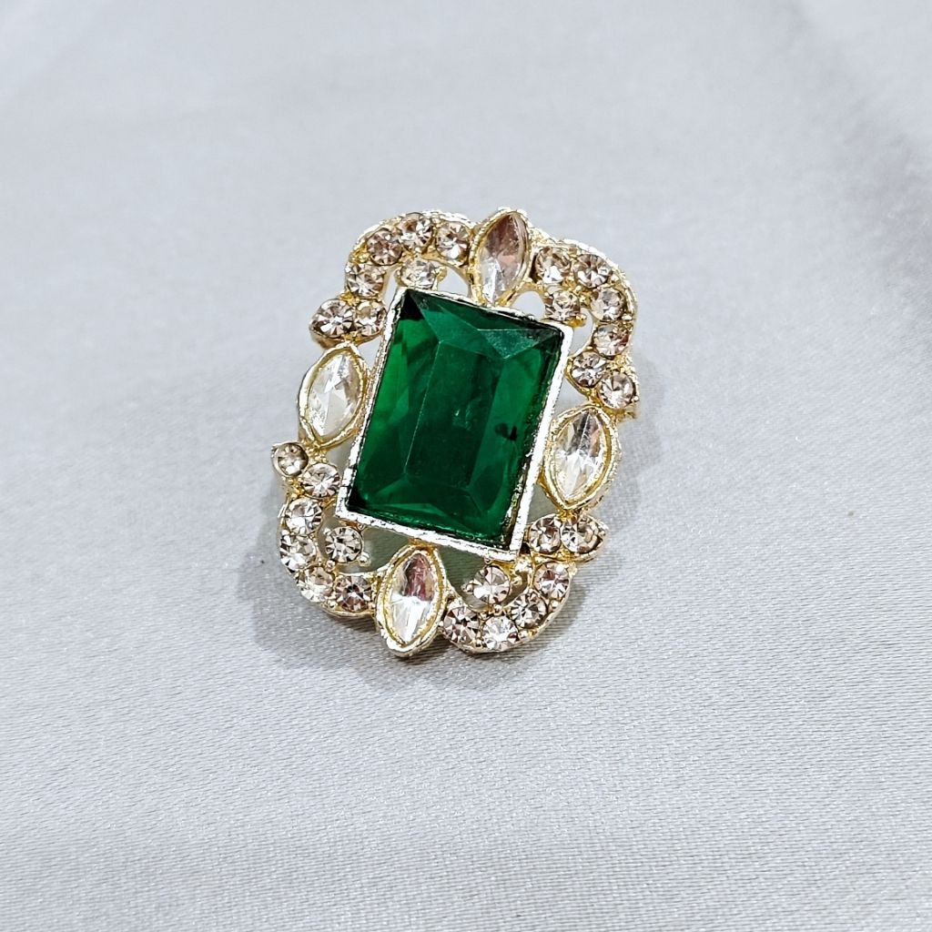 The detailed golden base with small white stones adds extra shine and makes the whole set look premium without being too heavy. The matching pendant with a bold green center stone enhances the overall look, while the adjustable thread with tassel gives a comfortable fit.